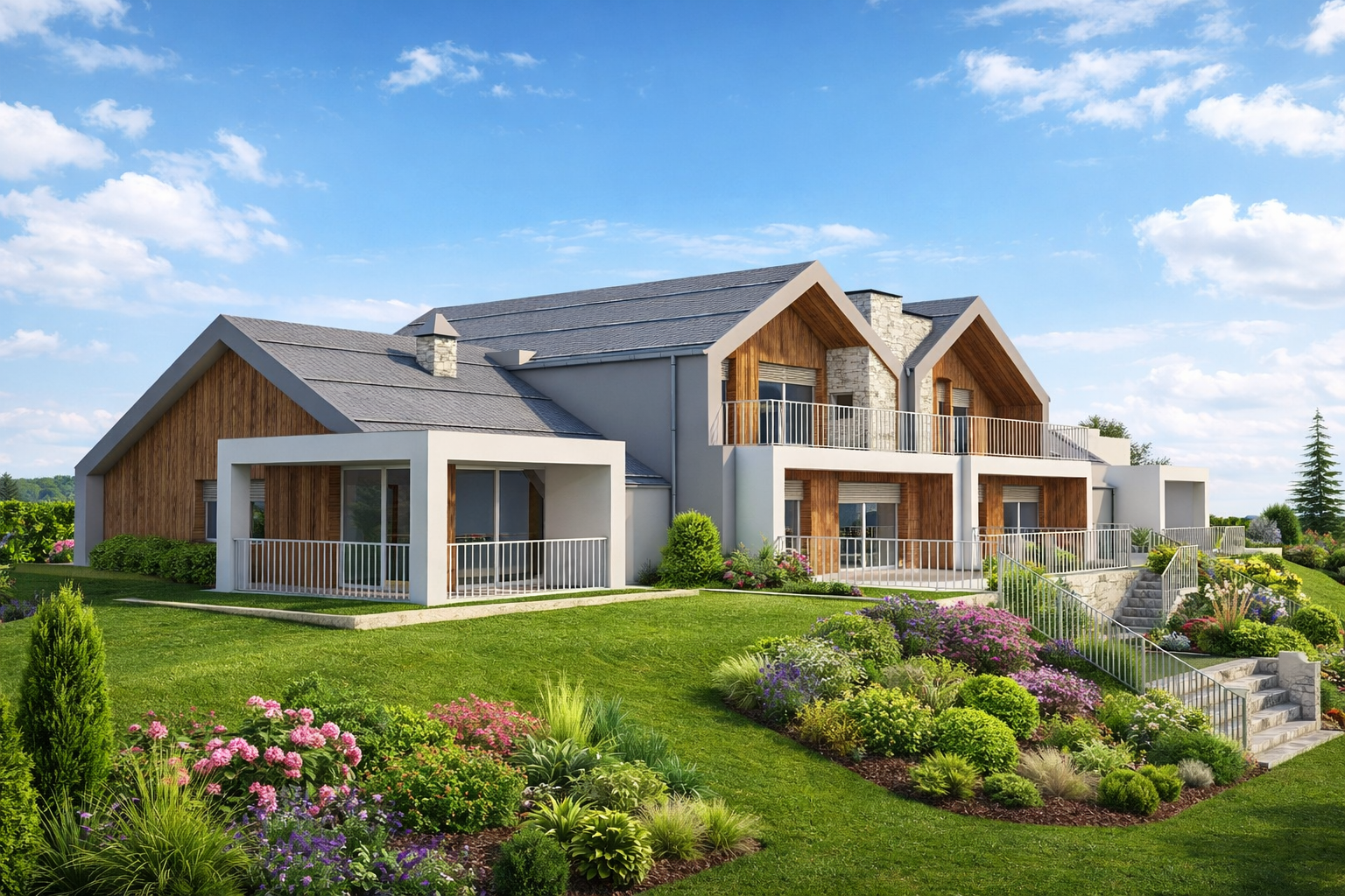 servizi posti al piano primo con predisposizione di ascensore.Tutte le unità sono abbinate a garage doppi interrati, un posto auto scoperto esclusivo e terrazzi panoramici. Gli appartamenti saranno dotati di tutti i comfort e gli impianti di ultima generazione.