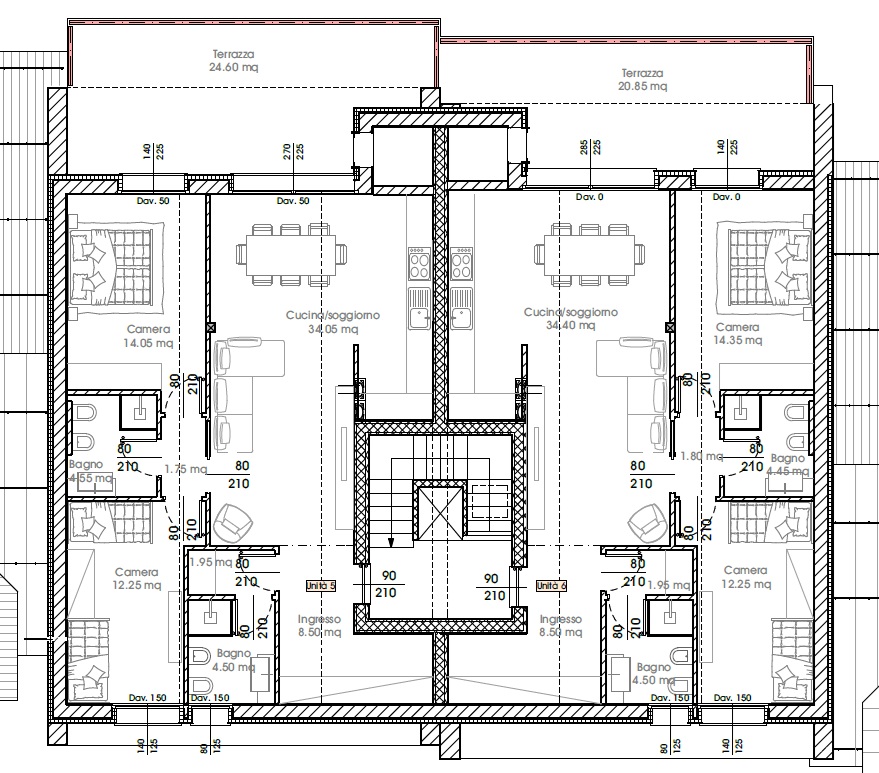 servizi posti al piano primo con predisposizione di ascensore.Tutte le unità sono abbinate a garage doppi interrati, un posto auto scoperto esclusivo e terrazzi panoramici. Gli appartamenti saranno dotati di tutti i comfort e gli impianti di ultima generazione.